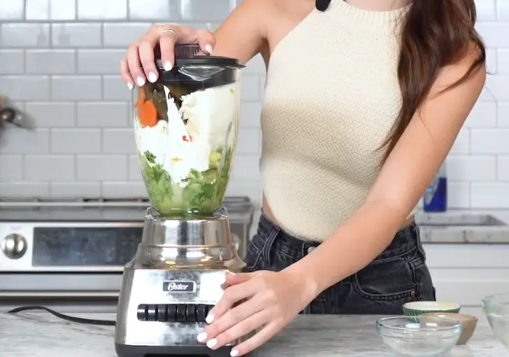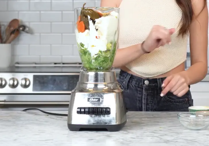 Blend on medium speed, then move to high until everything becomes smooth and creamy. Stop occasionally to scrape down the sides with a spatula so no chunks remain. The dip should be thick, creamy, and light green in color.